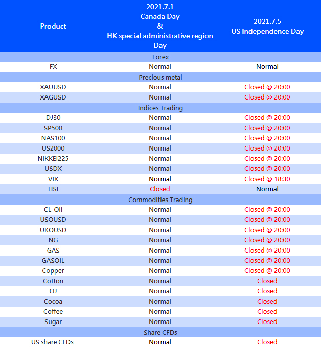 Please note that adjustment on following products due to Canada Day/HK special administrative region Day and US Independence Day.