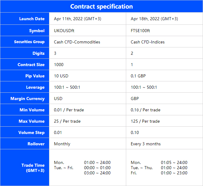 Kindly reminder that UKOUSDft will rollover firstly on Apr 26th, 2022.