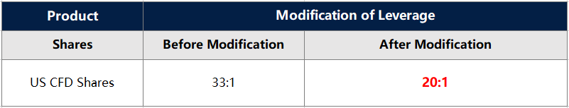 1. All specifications of US Shares stay the same except leverage.