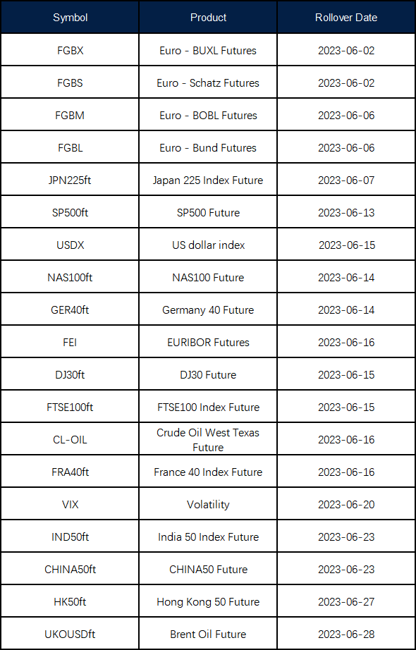 June Futures Rollover Announcement