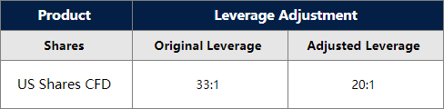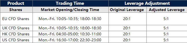 1. All specifications for Shares CFD stay the same except leverage during the mentioned period.