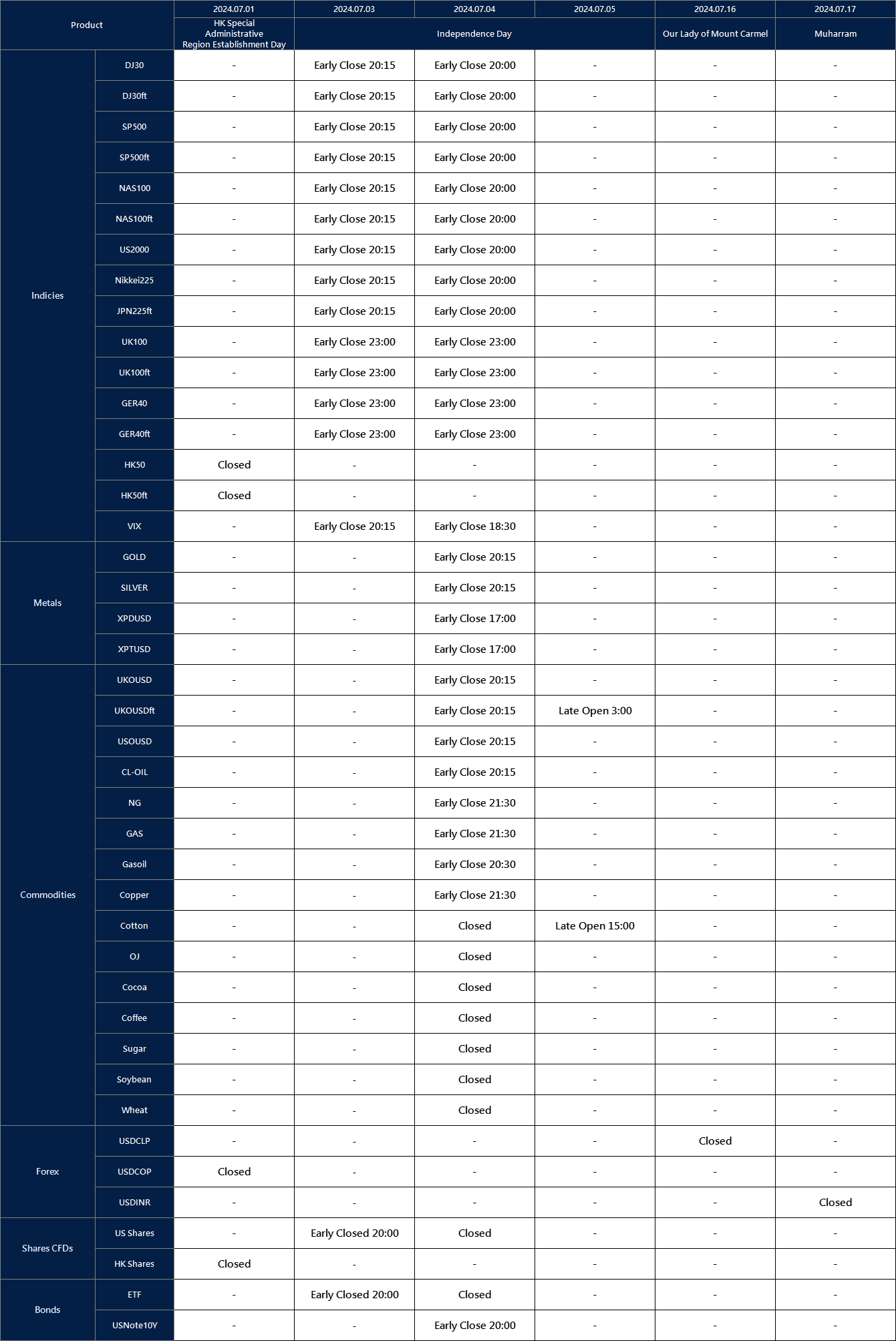 Affected by international holidays, the trading hours of some VT Markets products will be adjusted. Please check the following link for the affected products: