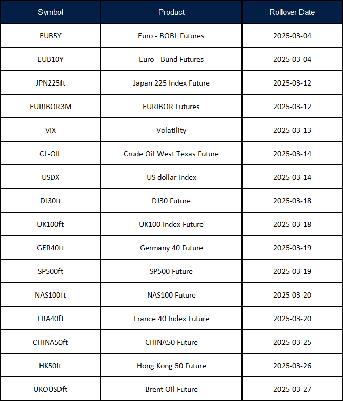 • All internal transfers for accounts under the same name will be prohibited during the first and last 30 minutes of the trading hours on the rollover dates.