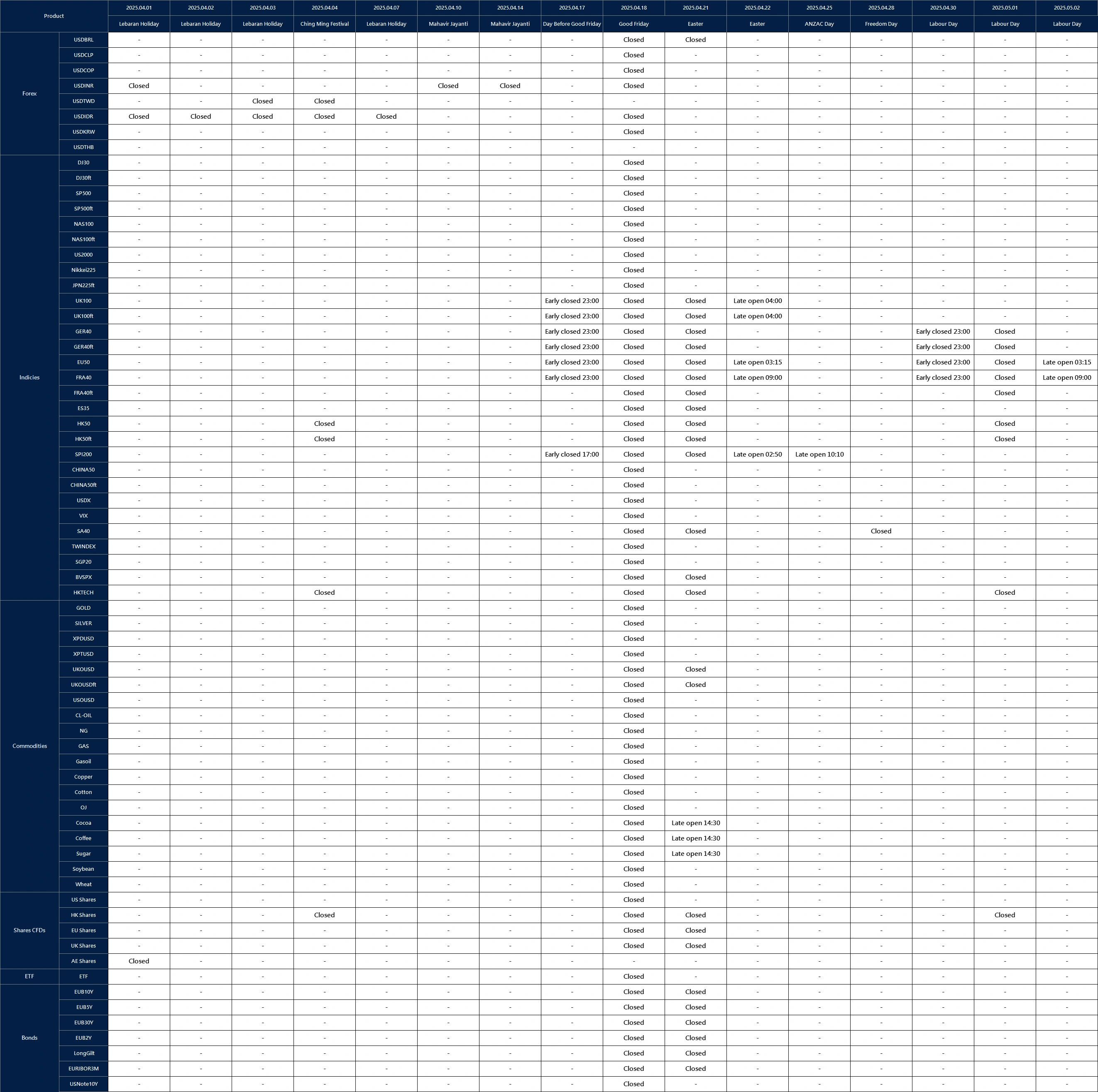 Affected by international holidays, the trading hours of some VT Markets products will be adjusted. Please check the following link for the affected products: