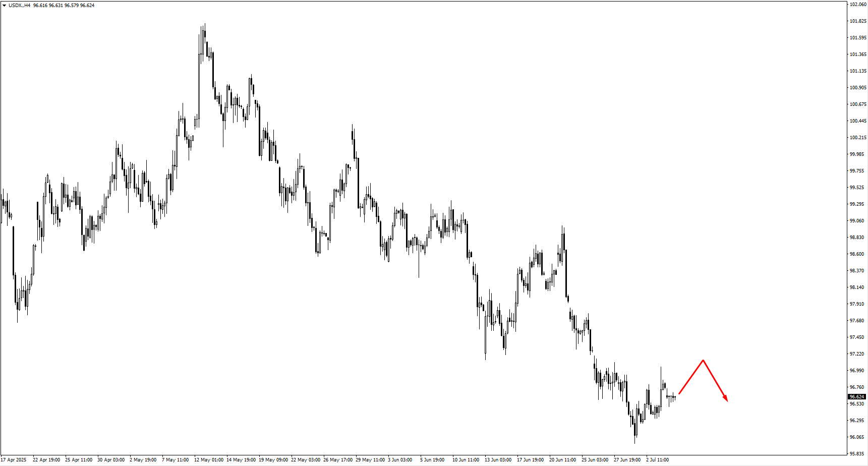 On Tuesday, July 8, the Reserve Bank of Australia’s cash rate decision is expected to set the tone for AUD pairs. Markets are pricing in a cut to 3.60% from the previous 3.85%, with expectations leaning toward a downward consolidation in AUDUSD early in the week. The signal is clear: traders are preparing for weaker Aussie momentum unless the RBA surprises with a more hawkish tone or a hold.